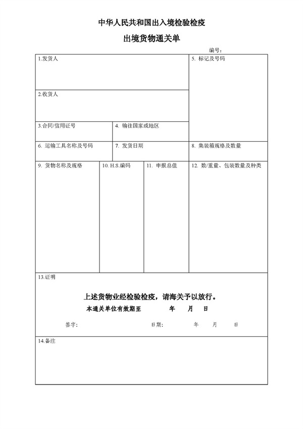 出境貨物通關(guān)單 Customs Clearance of Exit Commodities